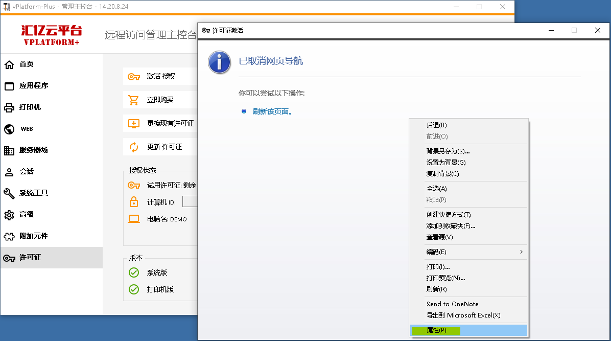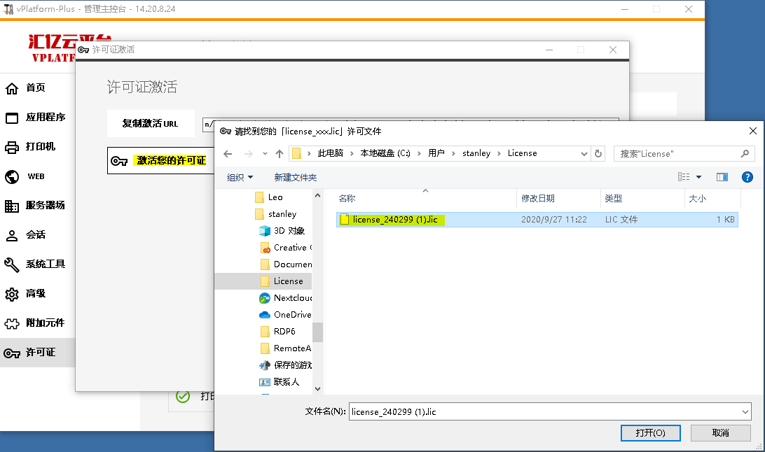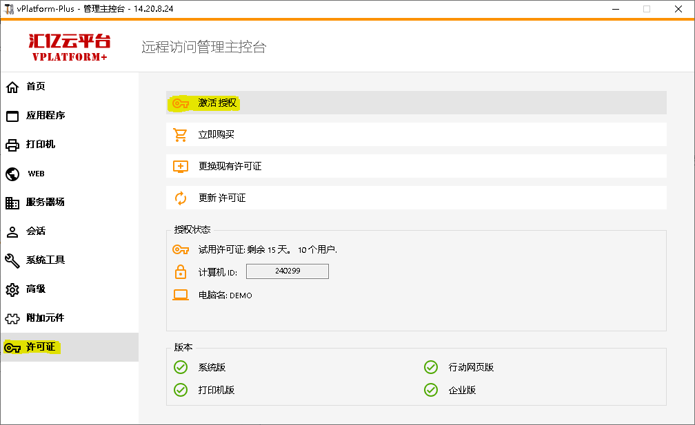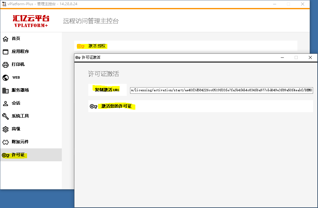 进入vPlatform+主程序的授权界面,并点击激活授权: