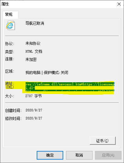 - 把地址列内的信息复制出来,删除https://licenseapi…….前的所有内容,把剩余的地址复制到其它浏览器或者主机上打开网址,或者发送给我们的技术支持人员