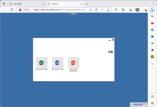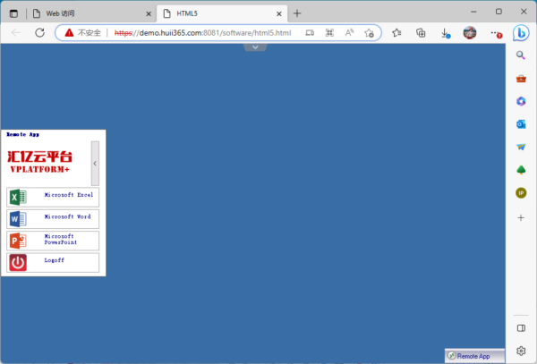 用户将在浏览器中远程任务栏,在任务栏上仅看到发布给该用户的应用