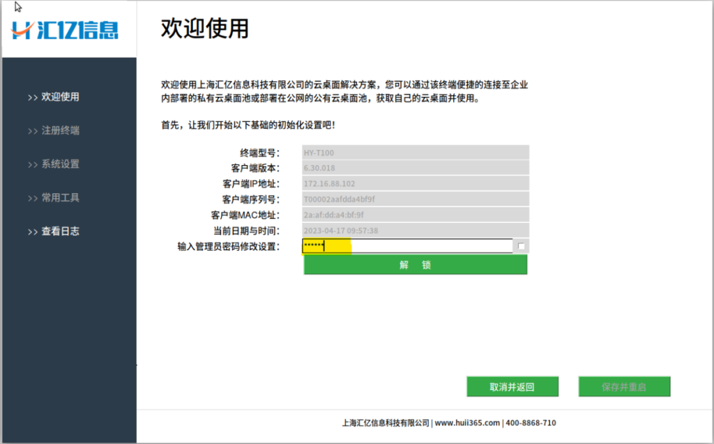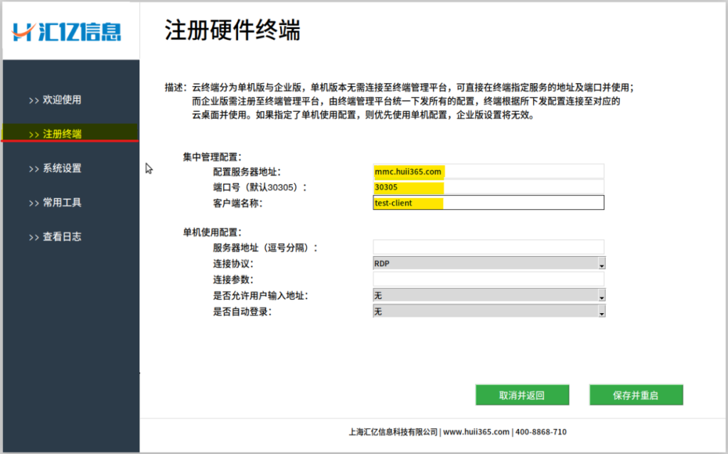 点击【保存并重启】,终端则会自动重新启动