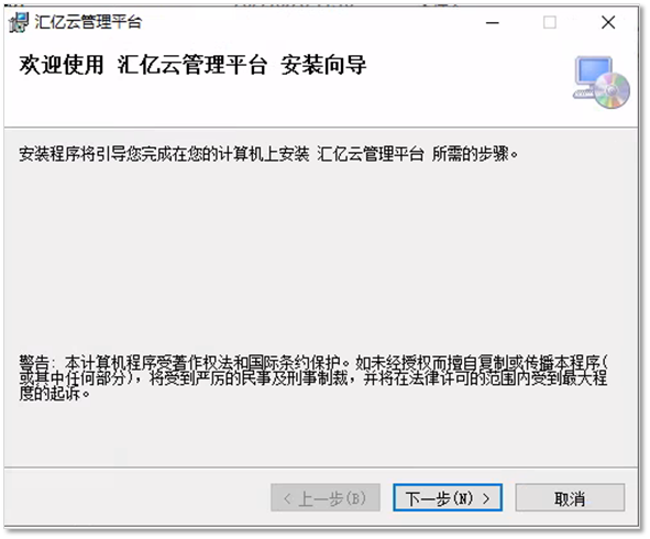 三、安装安装汇亿云管理平台,按【下一步】直到结束,中间无特别的选项及步骤;