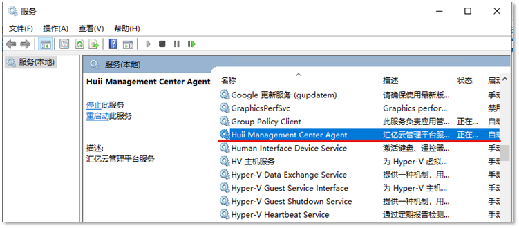 六、选择”Huii Management Center Agent”服务,并点击【启动】