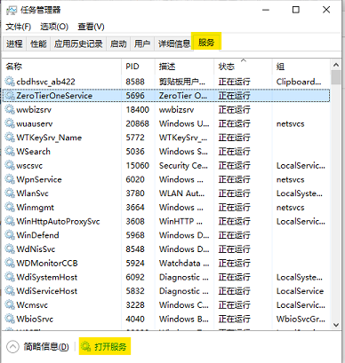 按ctrl+alt+del打开任务管理器, 点击【服务】-【打开服务】