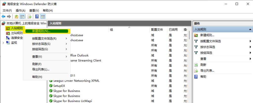 添加一条新规则,右击【入站规则】-【新建规则】