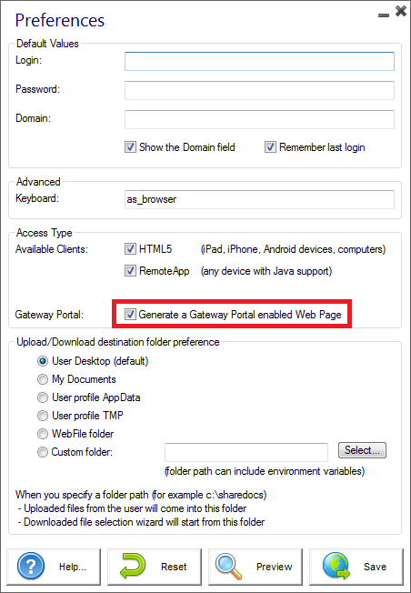 1) 点击AdminTool的”Web Portal Preferences” 确认 “Generate a Gateway Portal enabled Web Page”选中来生成Web访问页面:、
