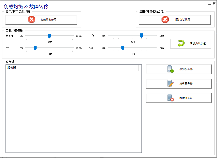 以下是负载均衡关闭的状态,点击它将激活负载均衡功能,并且禁止用户/服务器的指派.