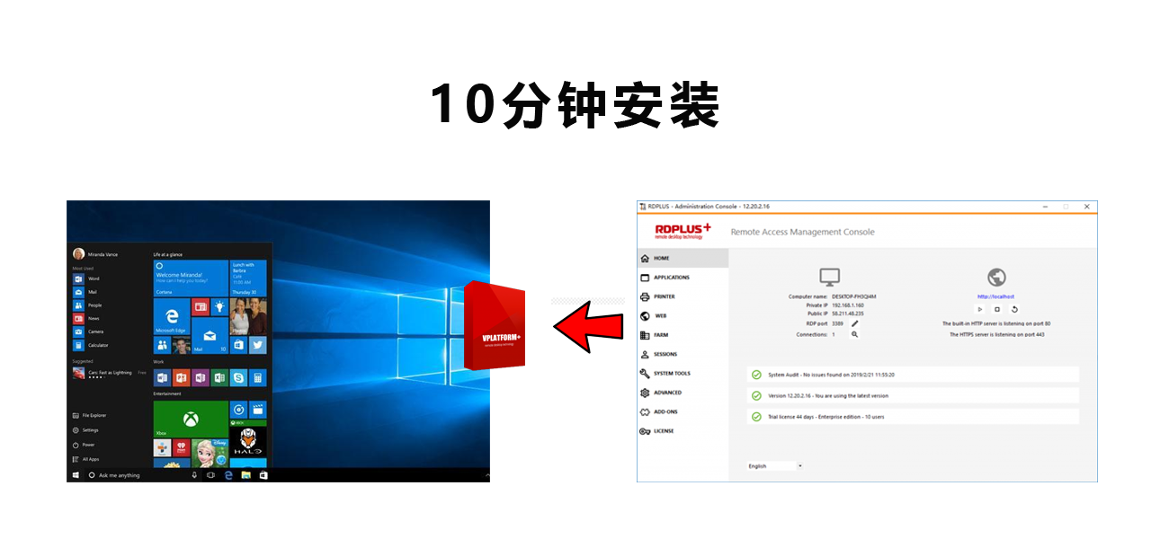 在 Windows 操作系统之上安装汇亿vPlatform+平台,将主机资源虚拟化并共享给多用户同时使用