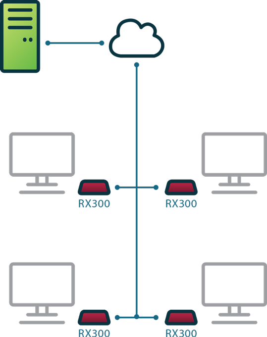 RX300易于配置,并自动从部署的vSpace Pro 11服务器接收更新。 管理员可以使用所有设置和配置定义设备模板,然后克隆并将其推送到新设备。 所有这些都可以由IT管理员通过vSpace Pro集中管理和配置,只需点击几下即可控制数百个RX300设备。 用户可始终使用最新的技术。