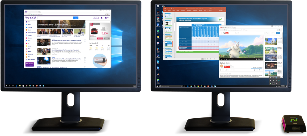 通过NComputing的具有辅助显示功能的USB扩展坞(VGA或DVI),增加了屏幕空间,提高了工作效率。